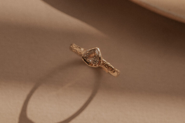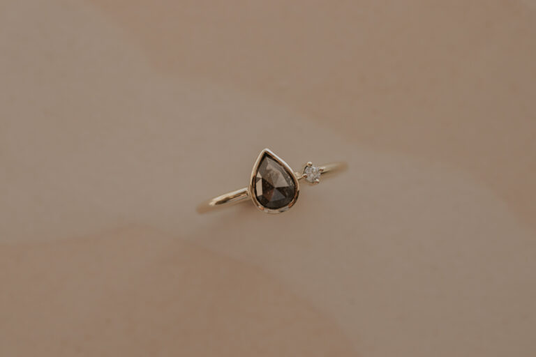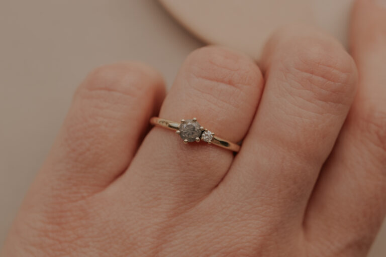 Ring met salt & pepper diamant en accent briljant – 14k goud