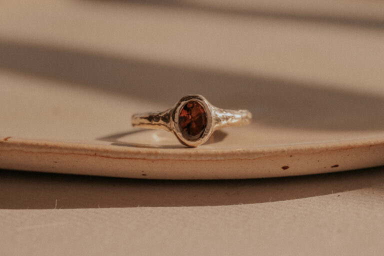 Stone Signet ring met roest/oranje toermalijn - 9k goud