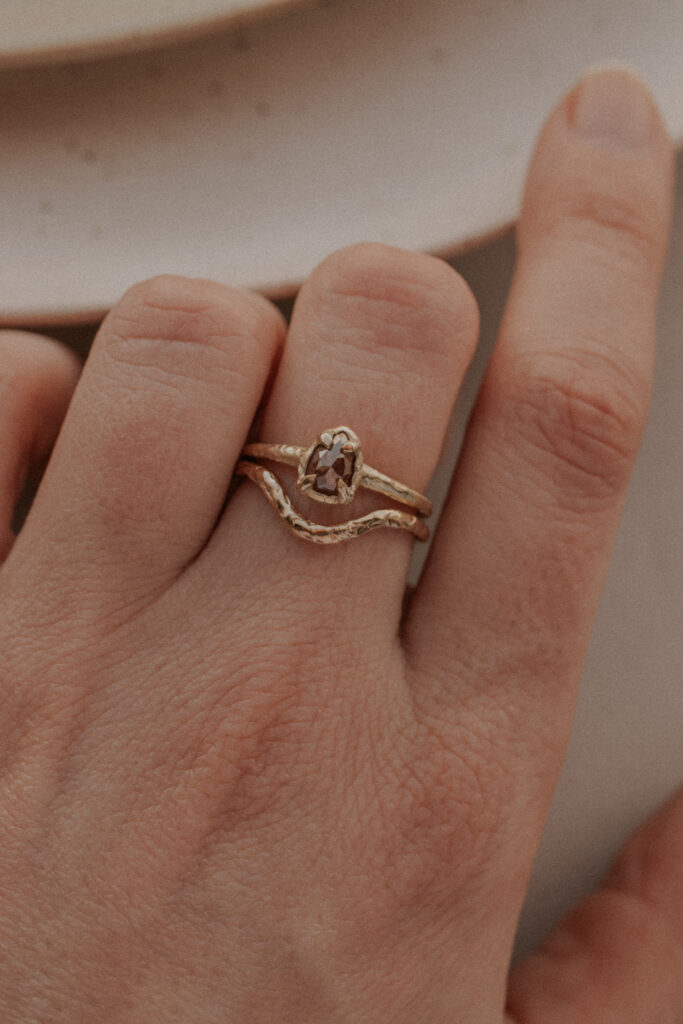 De ringen in deze foto: Molten ring met bruine druppel diamant & Molten curve ring.