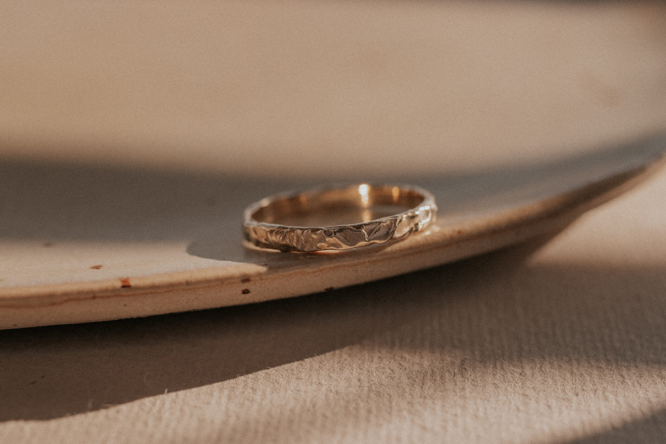 Each ring is handcrafted and always unique and one of a kind. The ring measures about 2.5 mm in width and 1.3/1.4 mm in thickness. Because of these measurements, this ring is very suitable as a wedding ring.