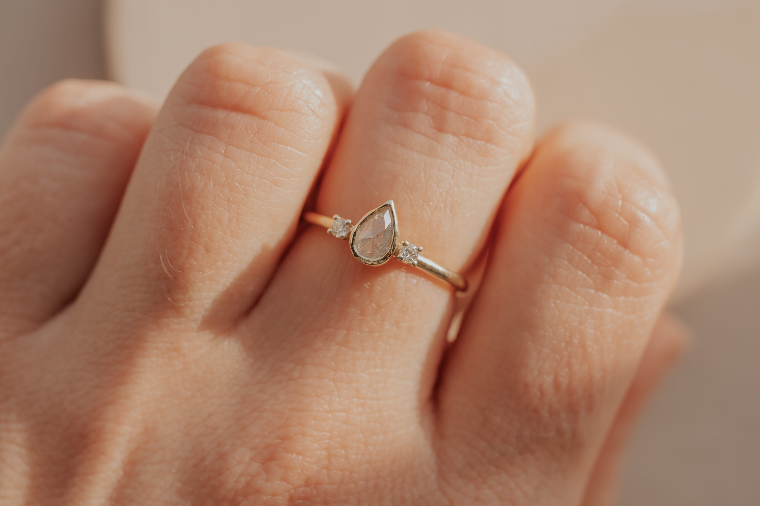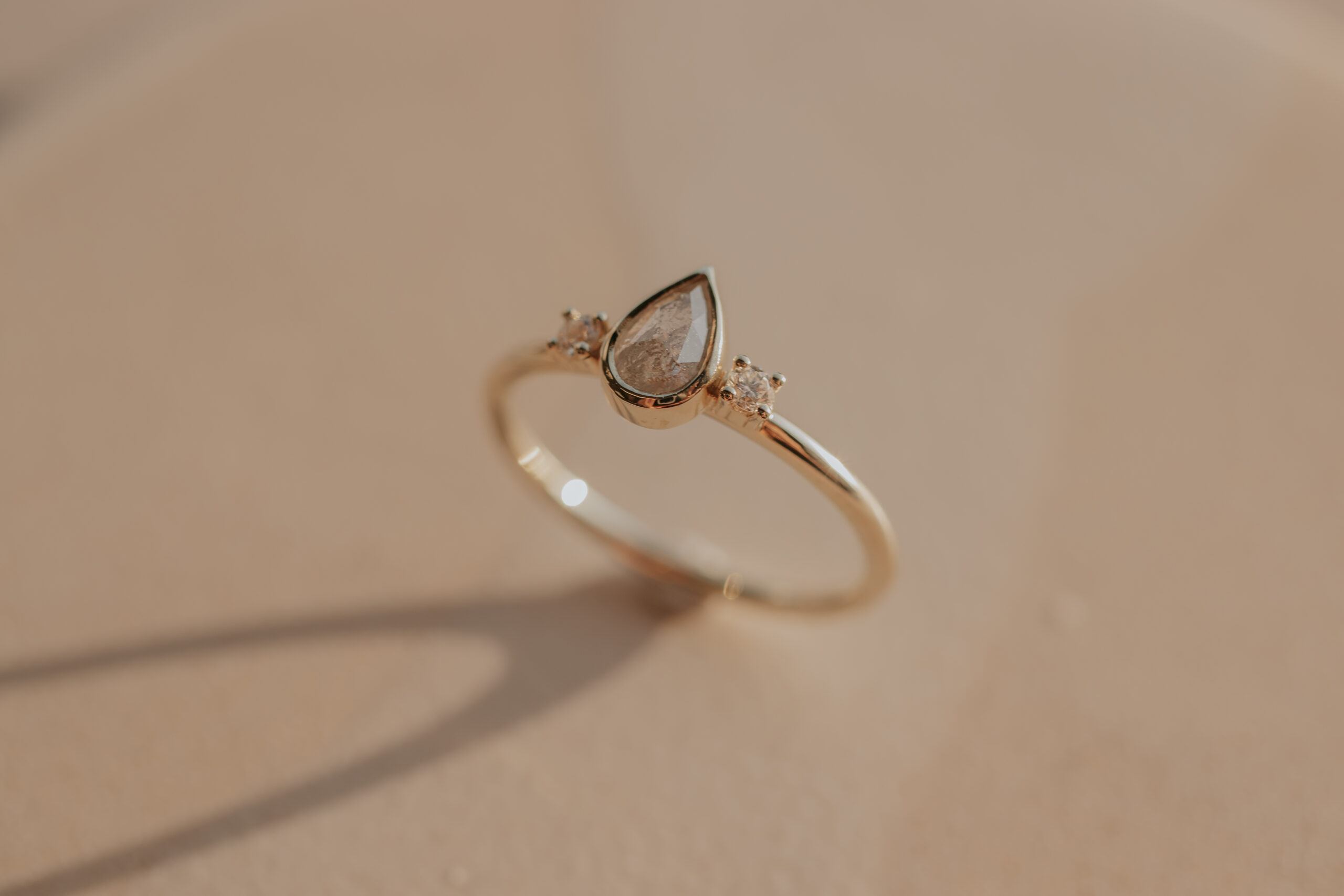 Ring with Teardrop Ice Diamond & Accent Diamonds – 14k Gold