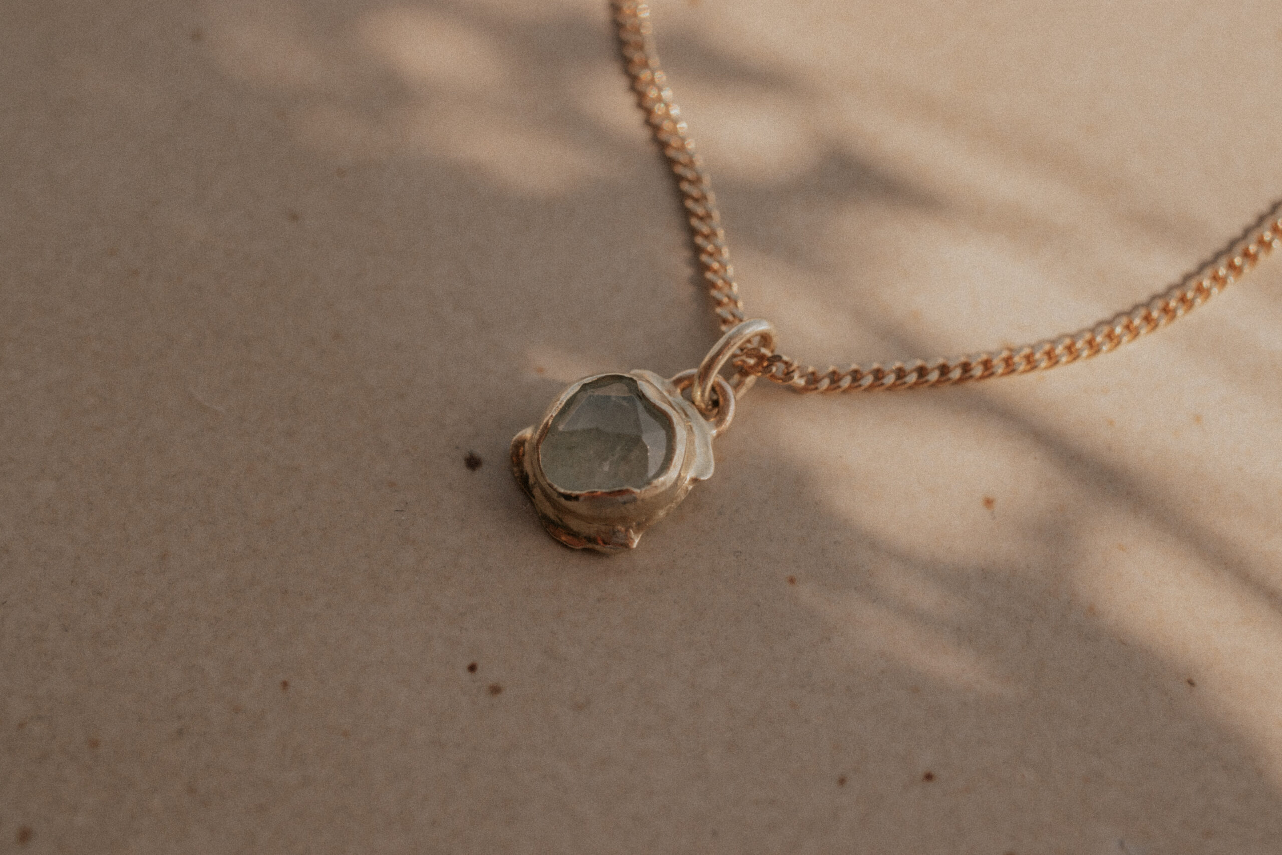 One of a kind, 14k gold Molten Aquamarine Charm – choose your favorite! Both charms have a bigger bail and can be attachted to all our necklaces (sold seperately). It can also be attached to a necklace of your own. If you have any difficulties while trying to attach it, please contact us so we can help you out.