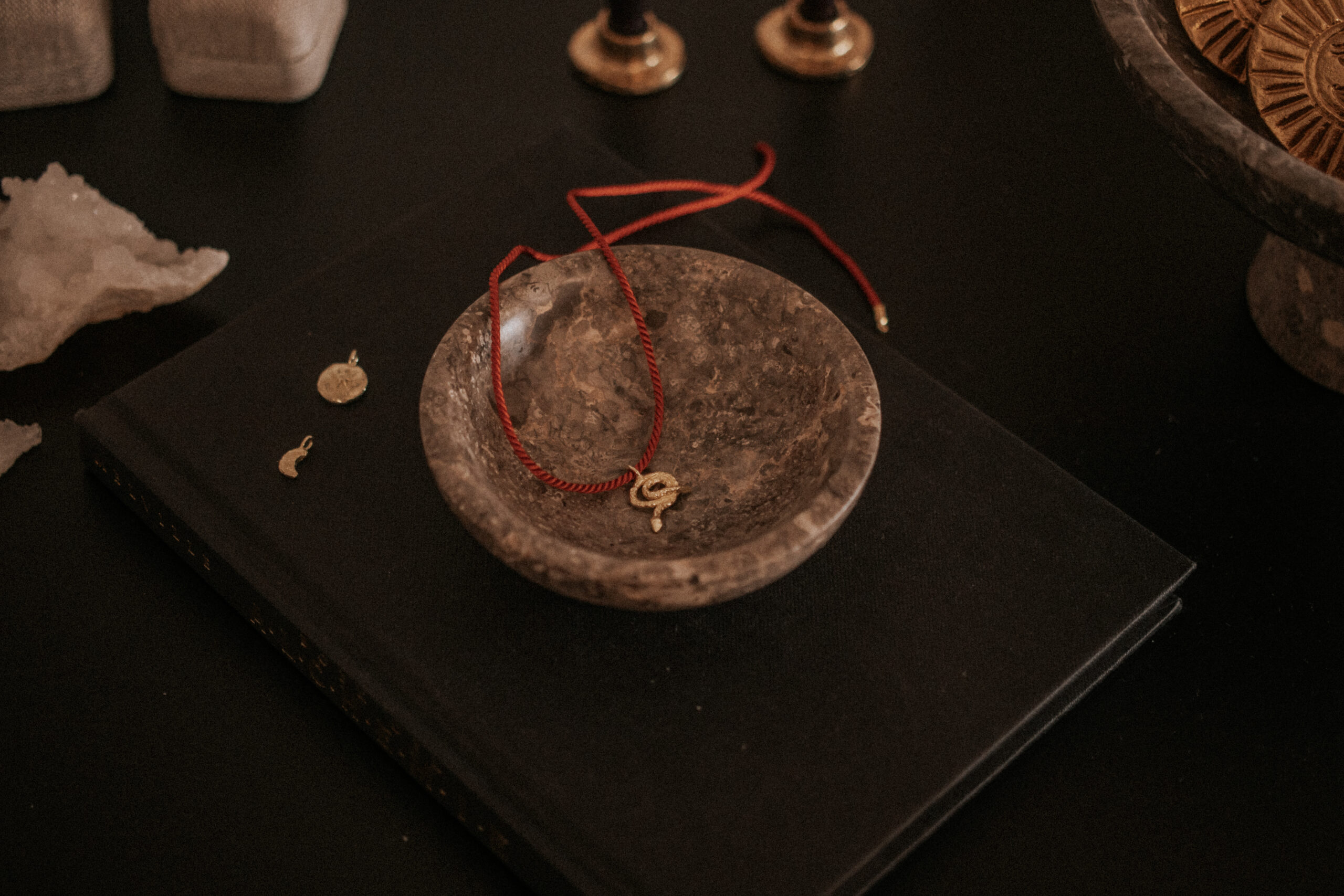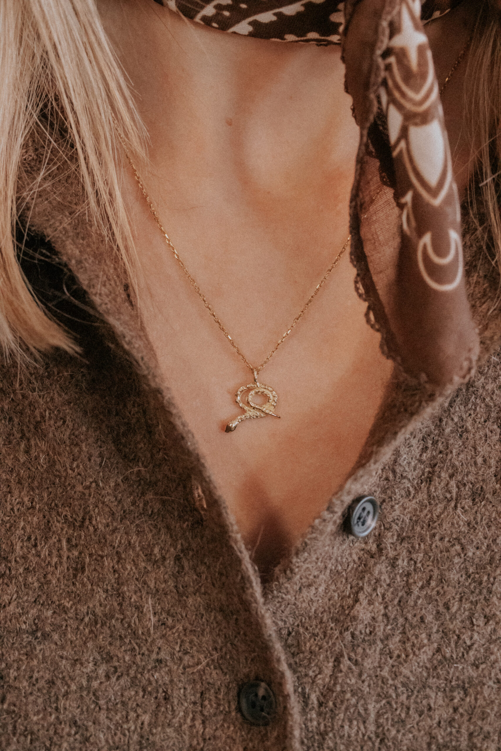 Een limited edition root to rise ketting met bedel, handgemaakt uit warm goudkleurig brass (messing). Elke bedel wordt met de hand vervaardigd en is daardoor altijd uniek. De bedel is ongeveer 10 x 12,5 mm groot.