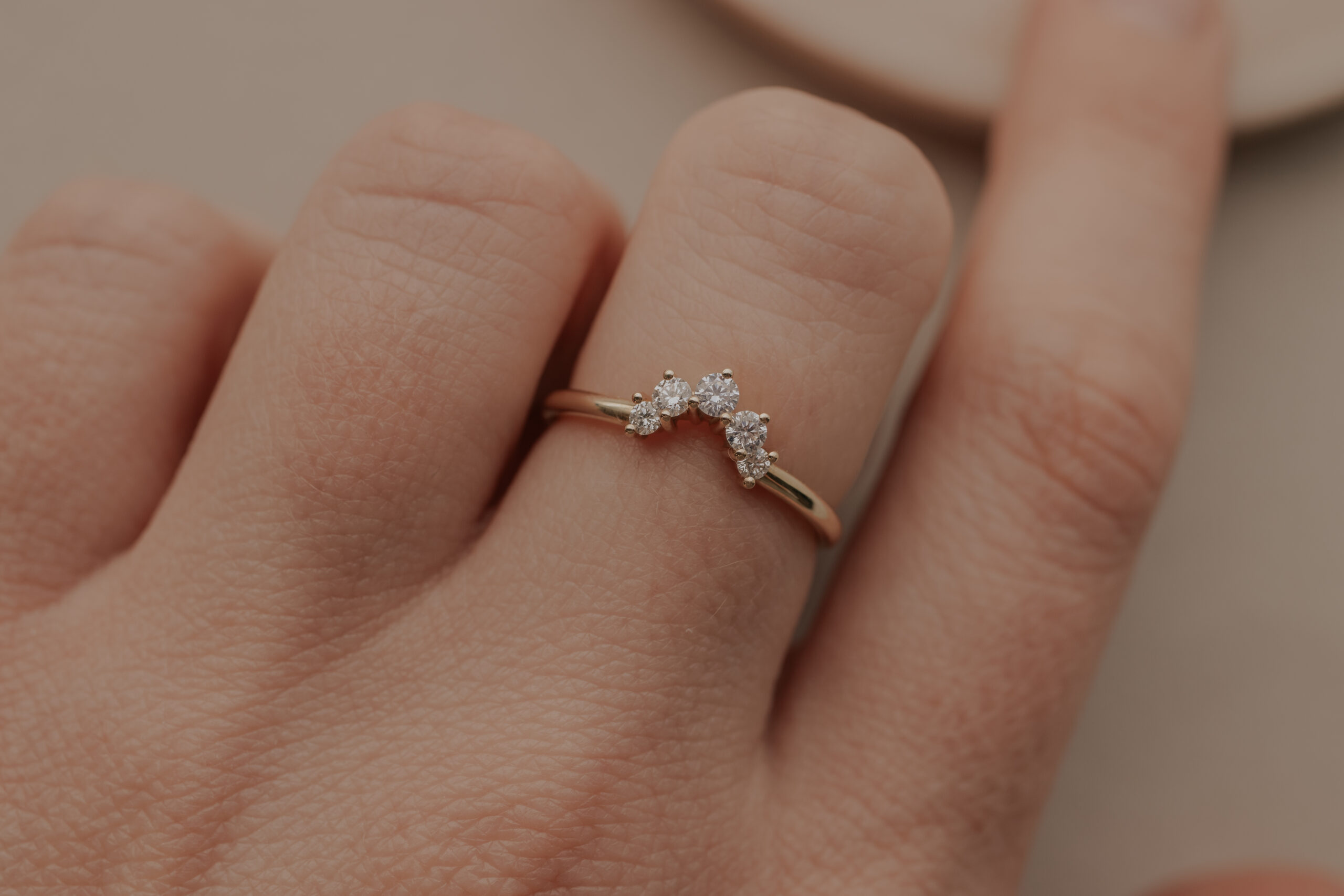Fijnere Curve Chaton ring met briljanten – 14k goud