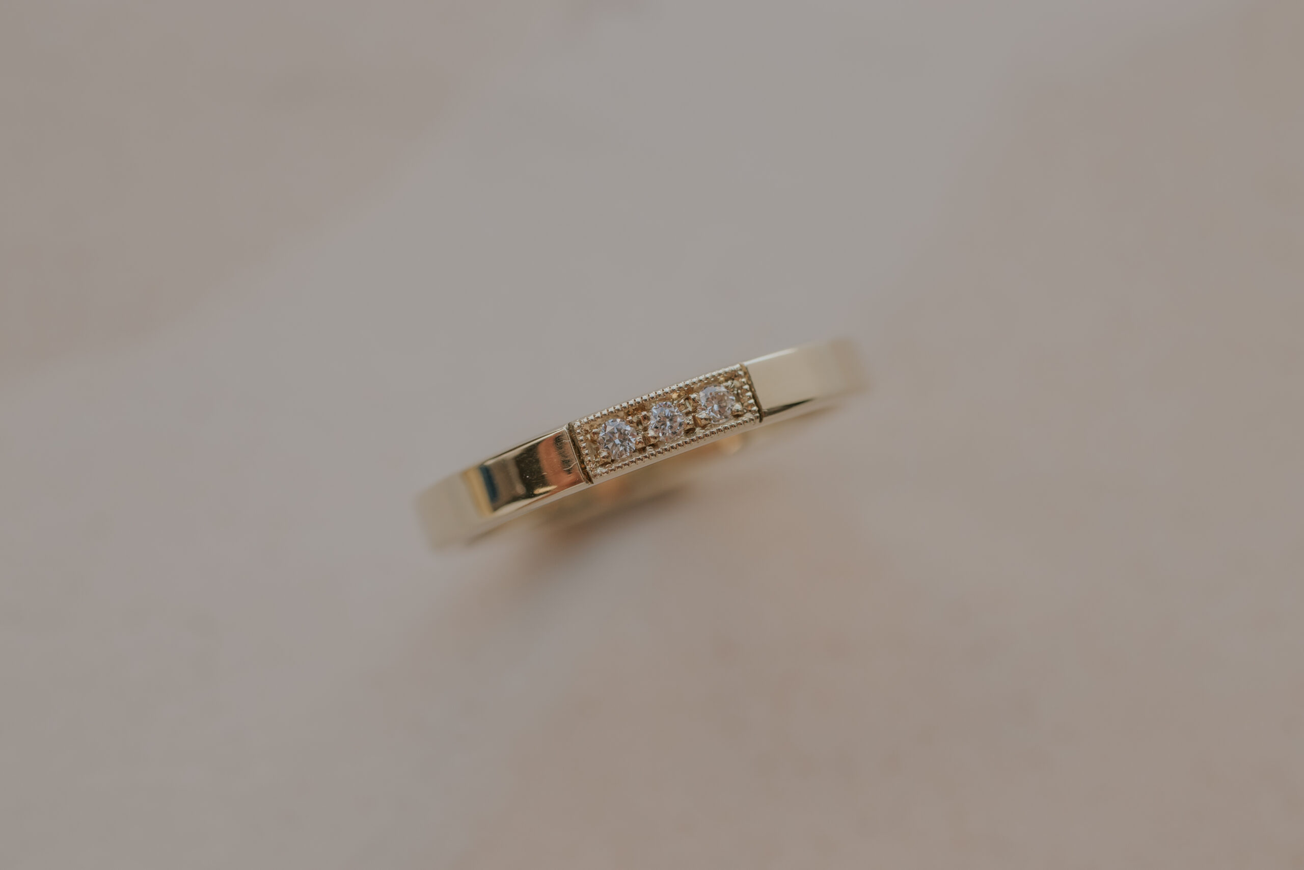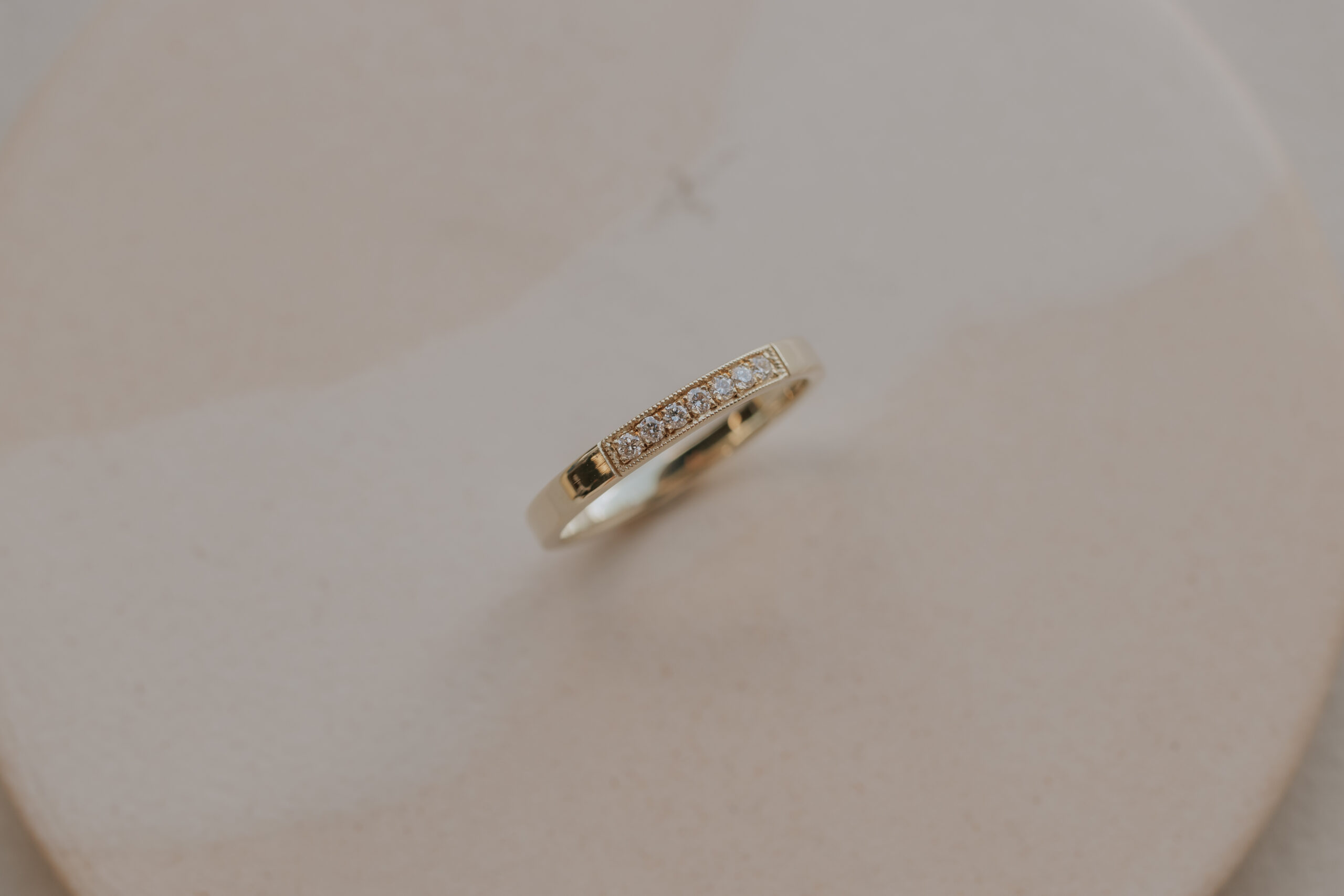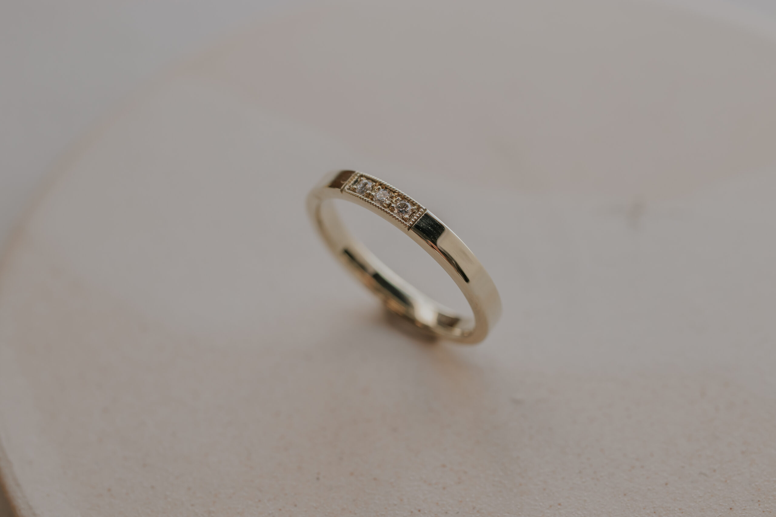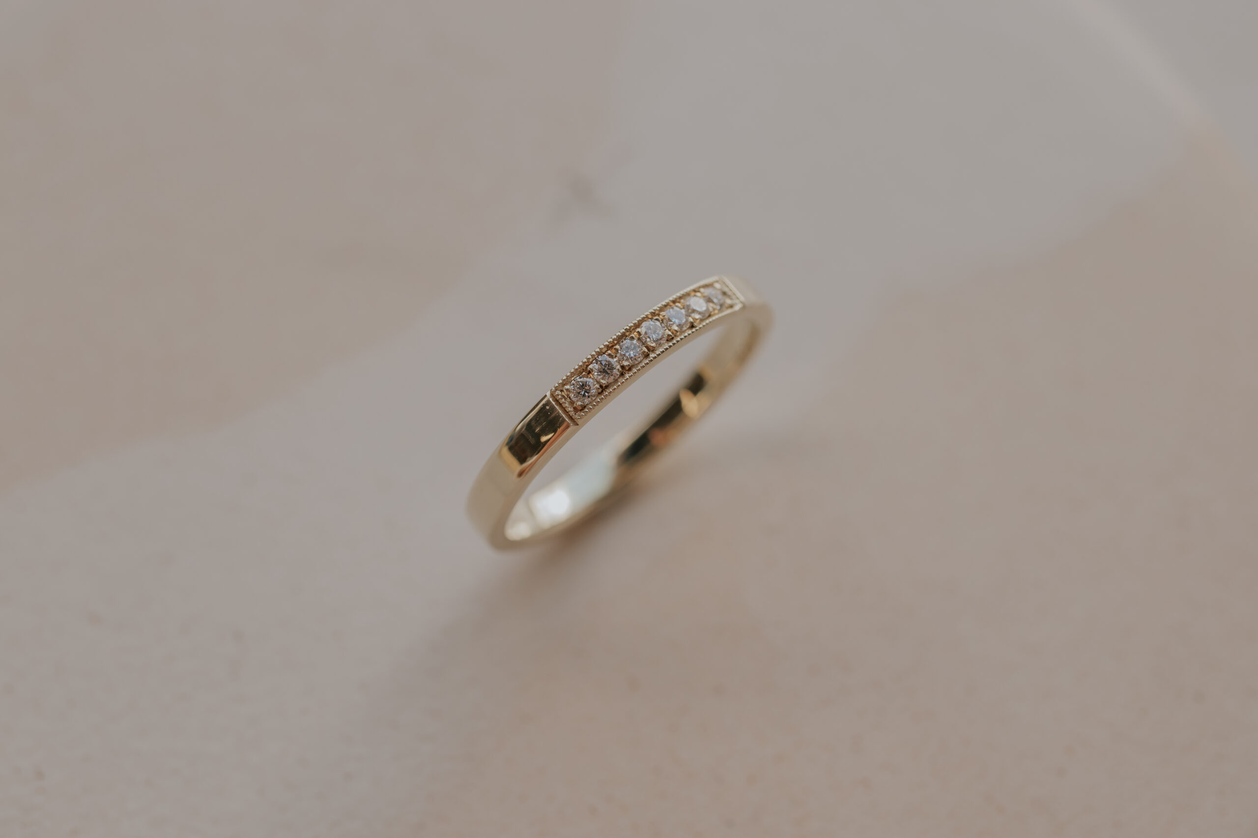 This women’s (wedding) band measures 2.5 mm x 1.4 mm and is available in 14k yellow gold (as well as white, warm yellow- and rose gold on request).