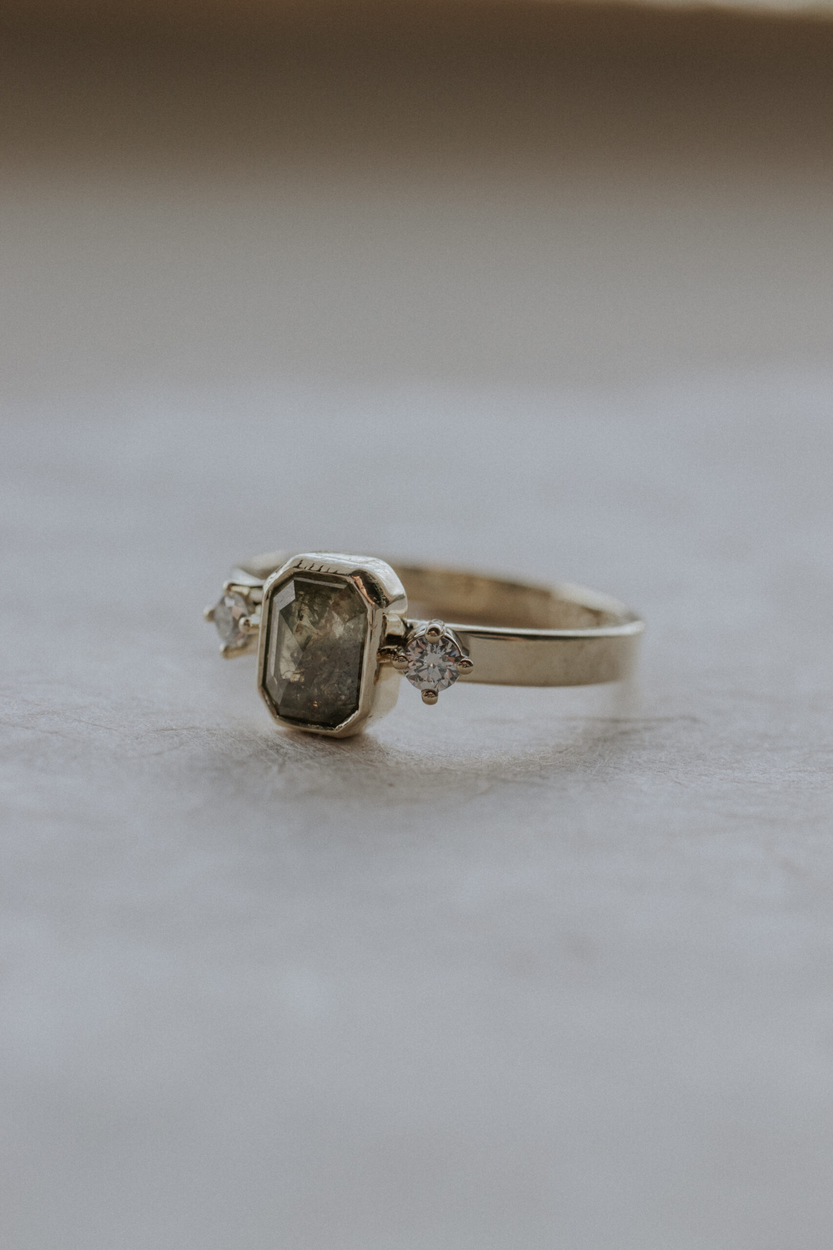 Anders dan helder wit, hebben rustieke diamanten diepe, aardse tinten en natuurlijke insluitsels die elke steen uniek maken. Denk hierbij aan rijke kleuren als bruin, groen, geel, blauw of zachtroze. Geen twee stenen zijn gelijk—door de spikkeltjes, kleurverschillen en kleine, natuurlijke ‘oneffenheden’ (de insluitsels) is elke rustieke diamant een one of a kind exemplaar. Een ring met rustieke diamant voelt daardoor natuurlijker, authentieker en net dat tikje minder klassiek aan—perfect voor wanneer je wat meer van stoer en organisch houdt.