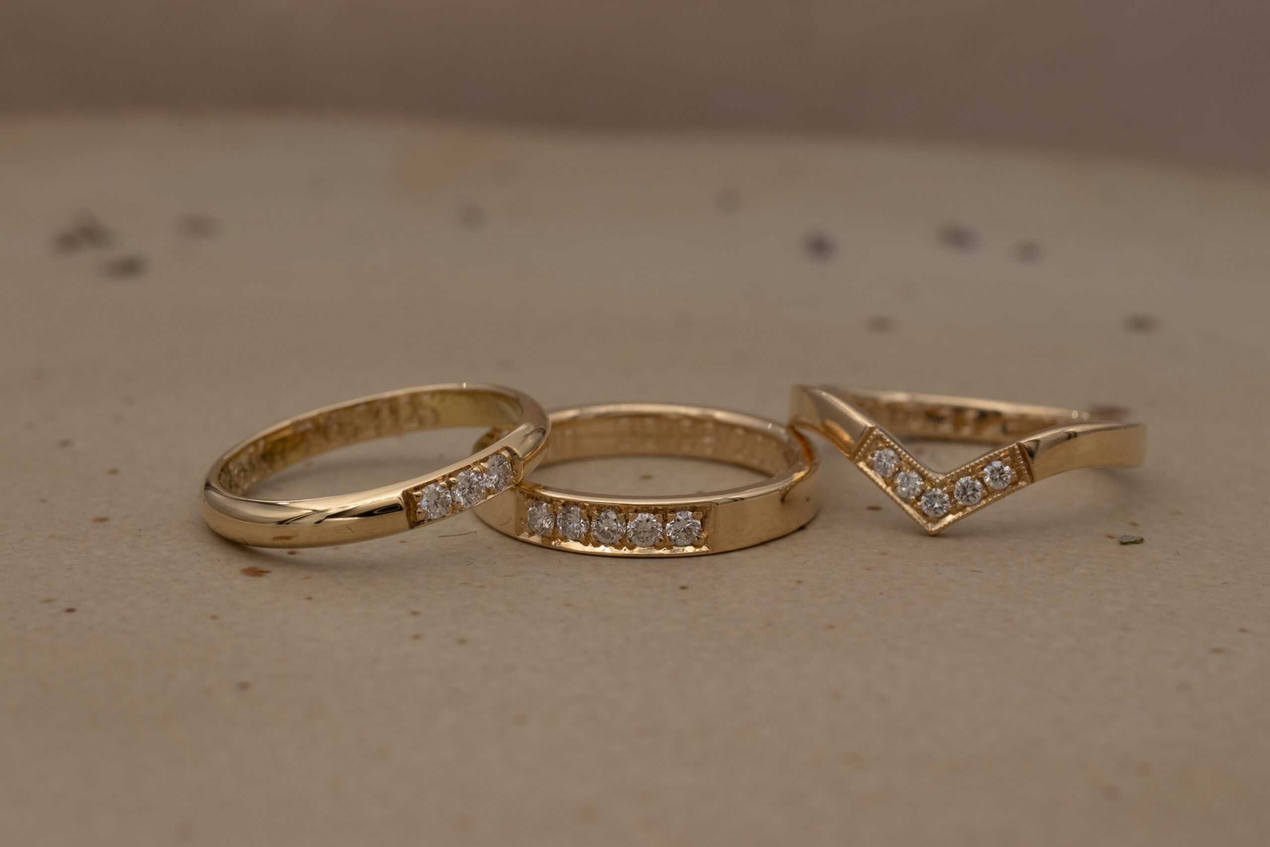 Elke trouwring die ons atelier verlaat is anders—net zo uniek als het liefdesverhaal waar hij bij hoort. Of je nu houdt van verfijnd en klassiek of juist kiest voor meer robuust en aards, het samen vormgeven van jullie ringen is een bijzonder proces. We helpen je graag bij het maken van een ontwerp dat niet alleen mooi is, maar ook écht bij jullie past.